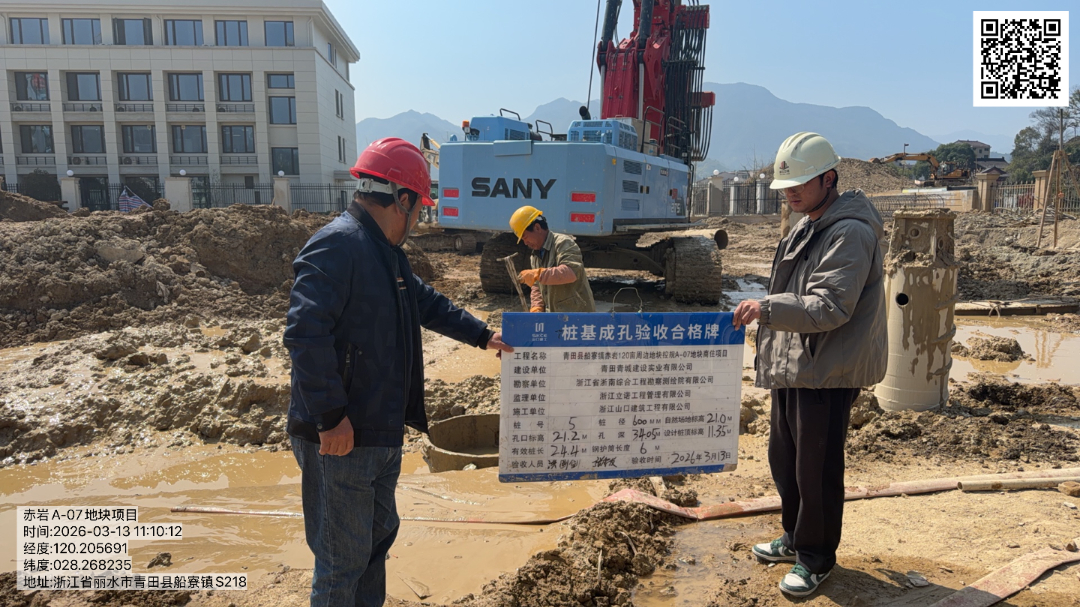 青田县快递共配中心:工程桩共计304根,已完成134根;围护桩共计193根,已完成40根,北侧高压旋喷桩已完成。