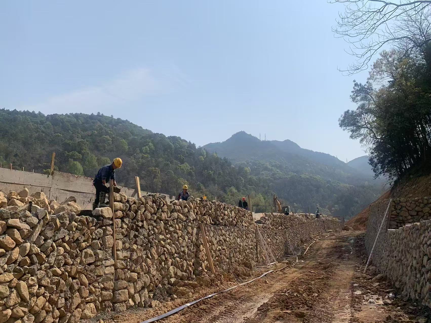 青田县东源镇项村工业园区基础设施工程(三期):正在进行剩余路段施工(基础开挖、管道填埋及临时通道搭设等)。