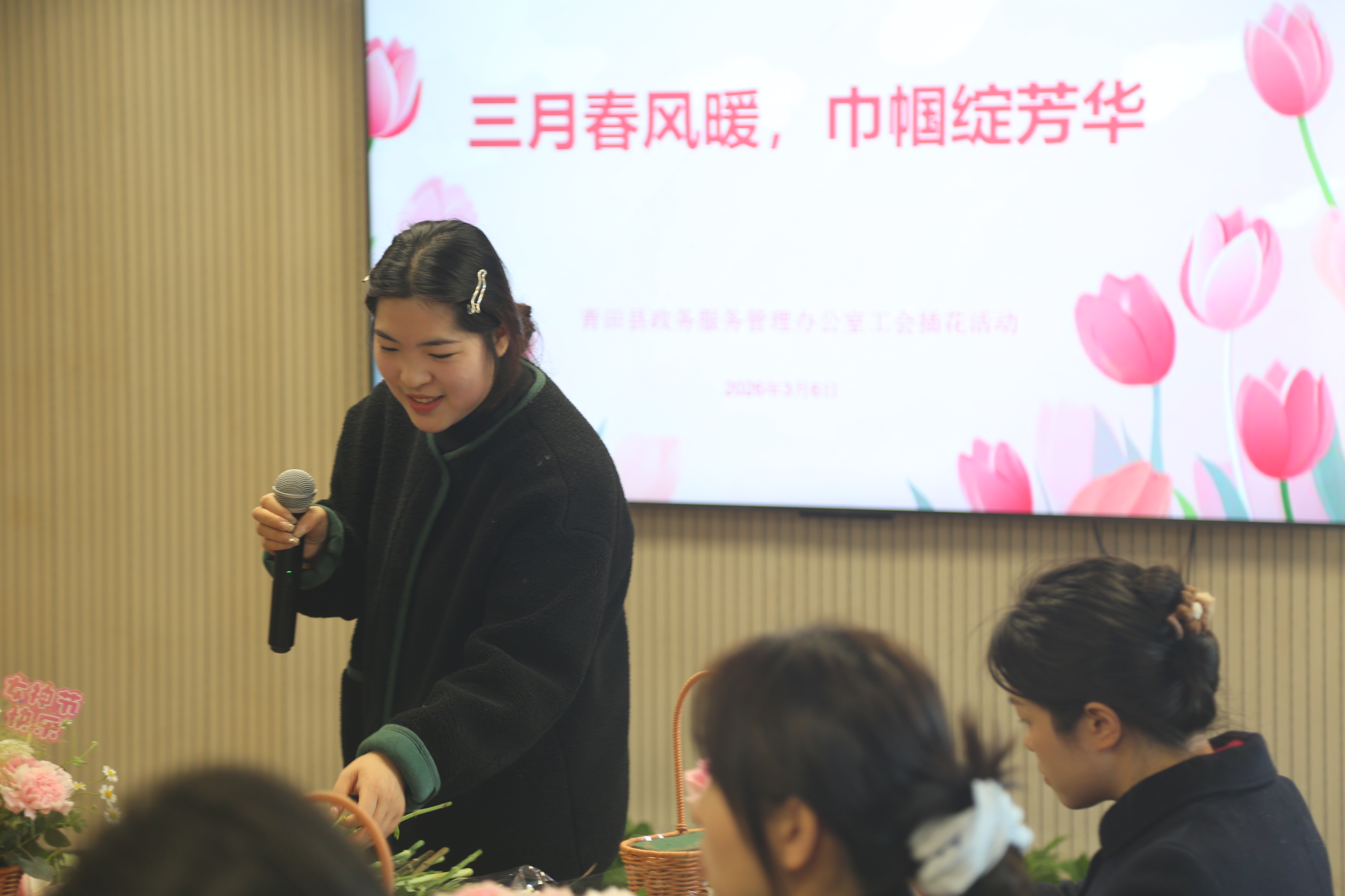 三月春来,阳光渐暖。在“三八”国际妇女节来临之际,为致敬单位全体女职工,丰富女职工精神文化生活,3月6日,县政务服务管理办公室开展插花活动,让女职工在花香雅韵中感受节日的温暖,凝聚巾帼力量。