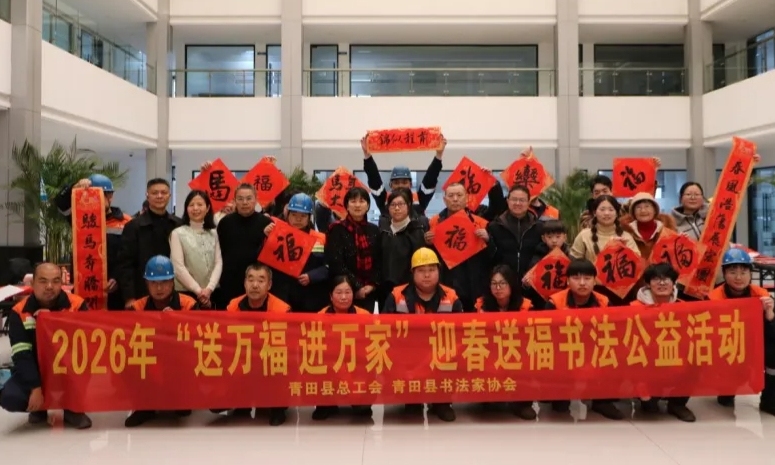 县总工会“送万福 进万家”迎春送福书法公益活动走进浙江青山钢铁有限公司