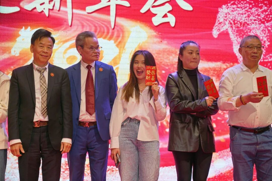 授证仪式结束后,年会进入文艺表演与幸运抽奖环节。多轮抽奖活动穿插进行,奖品包括现金红包、精品红酒、西班牙火腿及苹果手机等,现场互动频繁、笑声不断,节日气氛愈发浓厚。