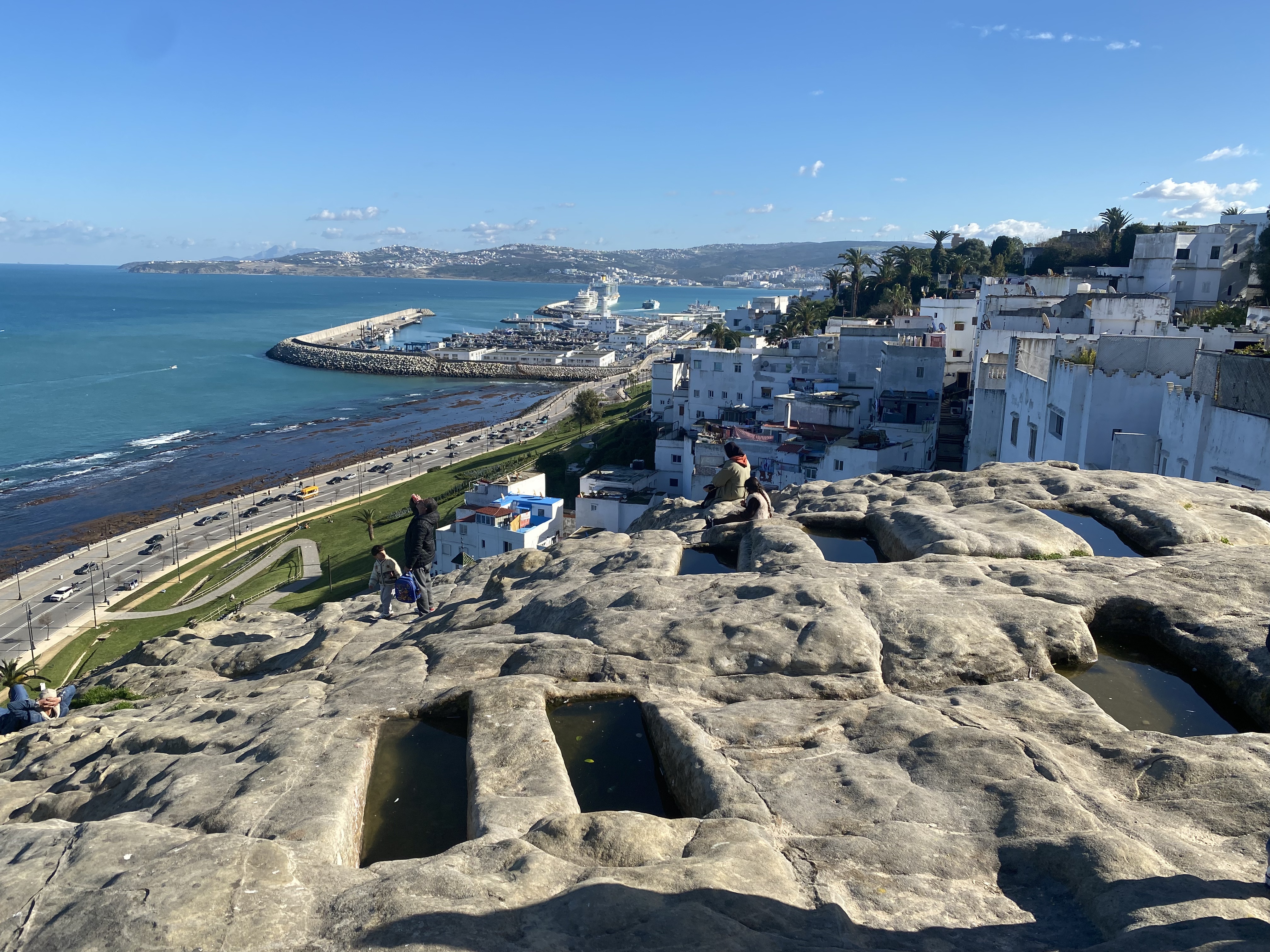 那座指示牌是指地中海和大西洋交汇处一条天然独特的分界线,显示出地中海的深蓝与大西洋的绿蓝。这不仅仅是航海的重要坐标,也是摩洛哥最受欢迎的景点之一。在摩洛哥200迪拉姆纸币上,也能看到灯塔的图标。
