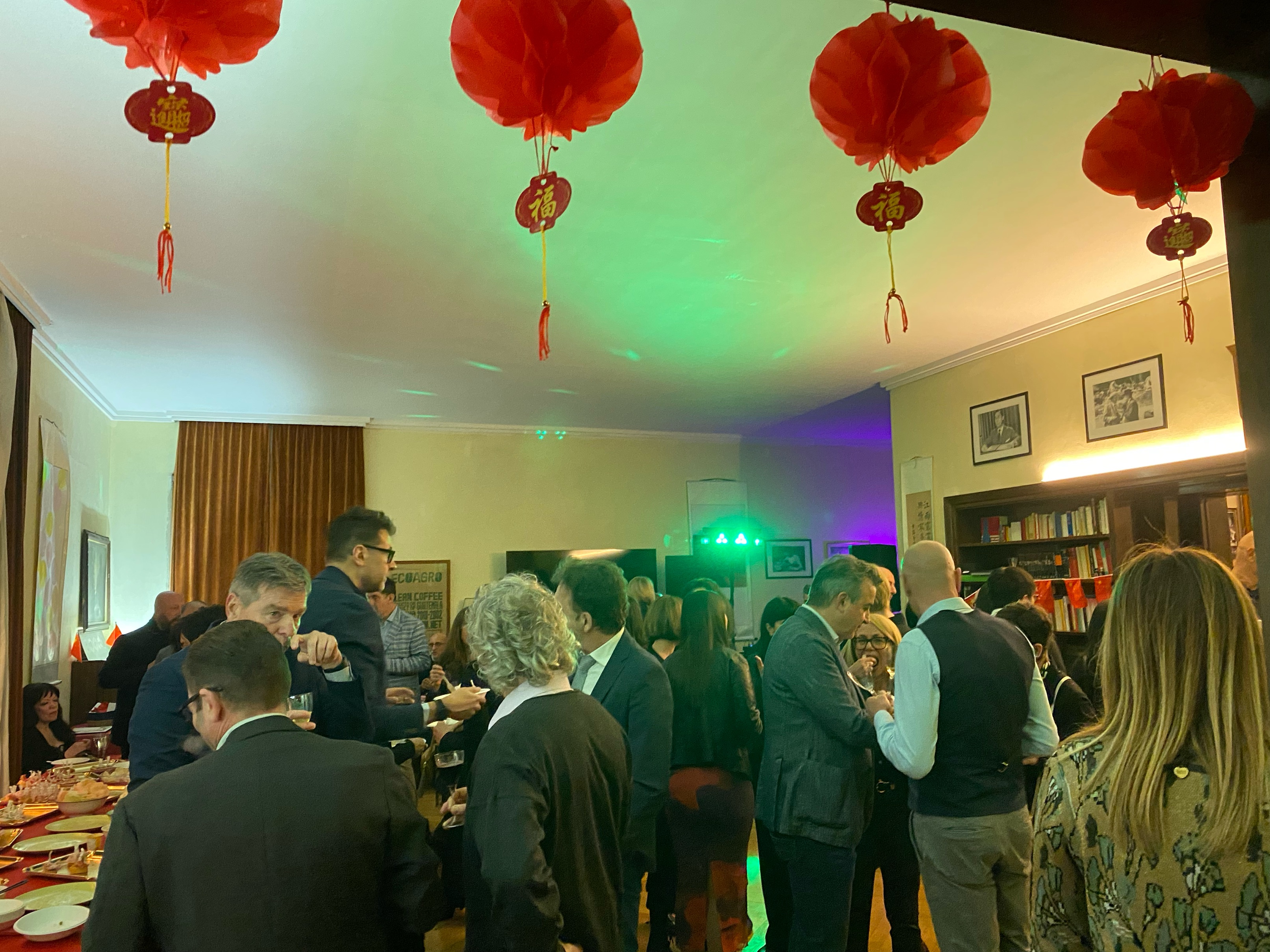 伴随着音乐师奏起动人的乐曲,当地政界官员、商界名流、华侨华人代表纷纷应邀而来。大家端着酒杯,品尝精美的意大利食物和中国美食,最受欢迎食物是中国的饺子和春卷。