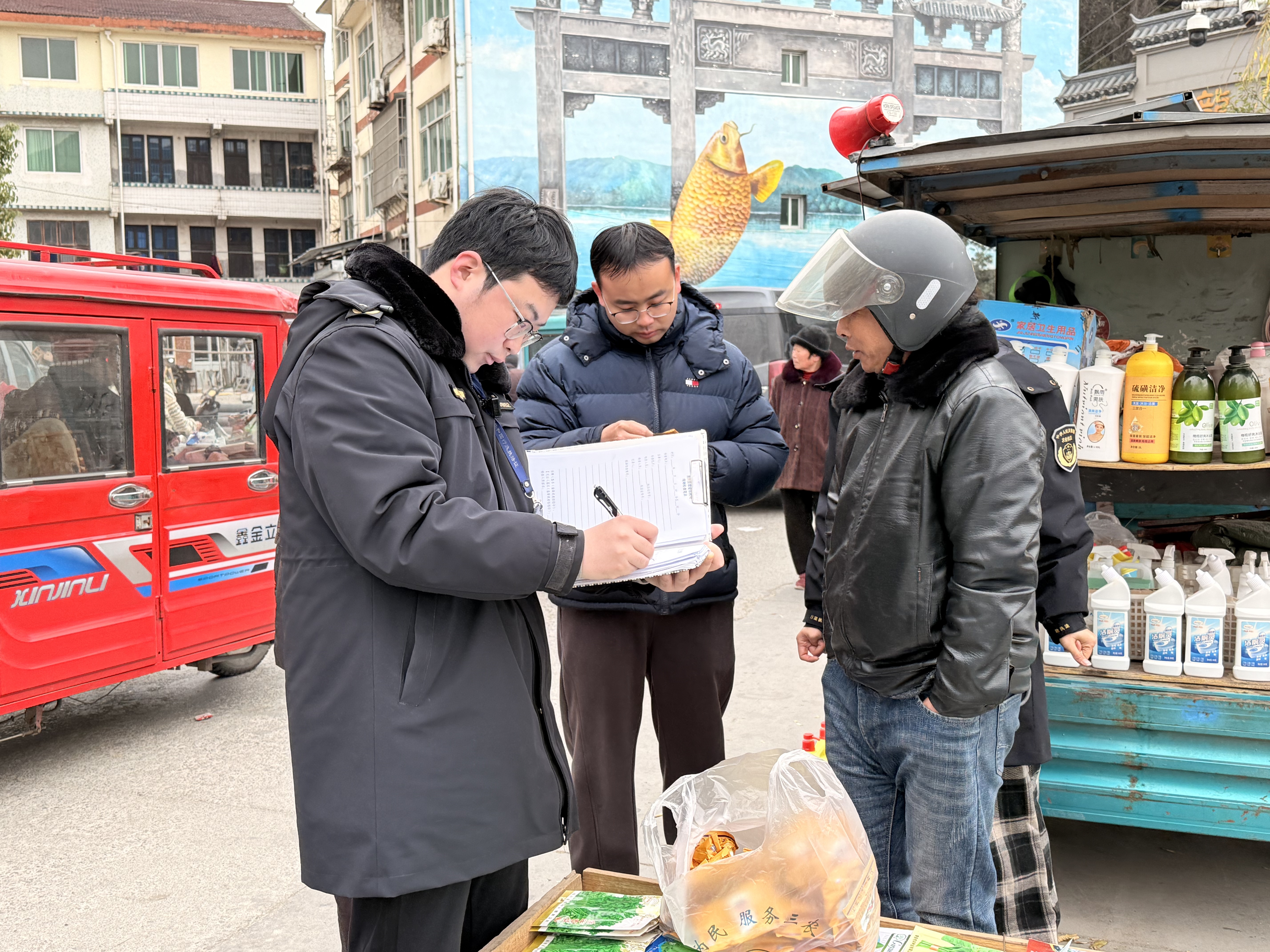 1月20日,船寮镇新开垟社区联合社区农业执法队对辖区集市摊点开展农药销售专项整治行动,旨在进一步规范农资市场秩序,切实保障农产品质量安全与农业生产环境。