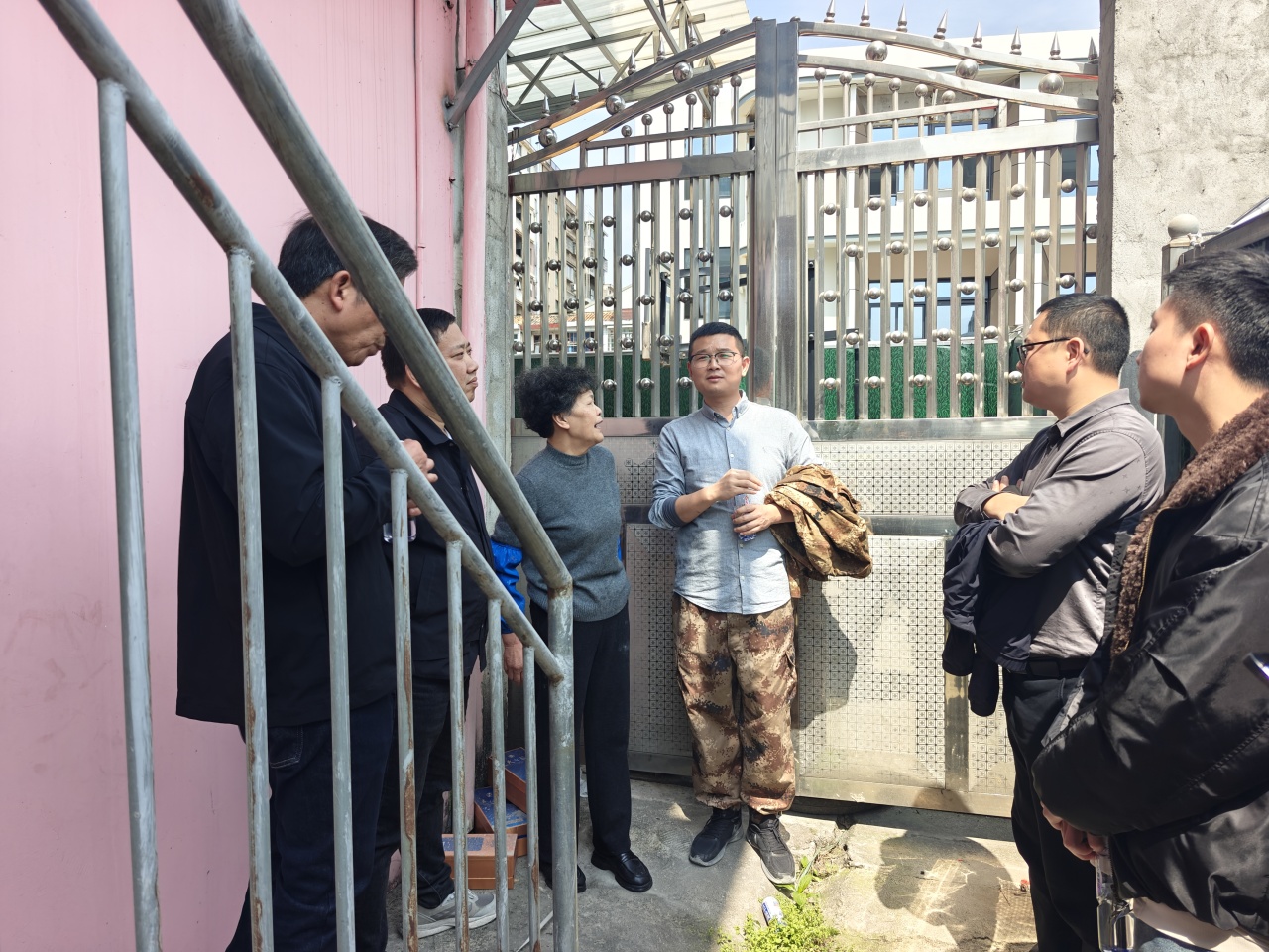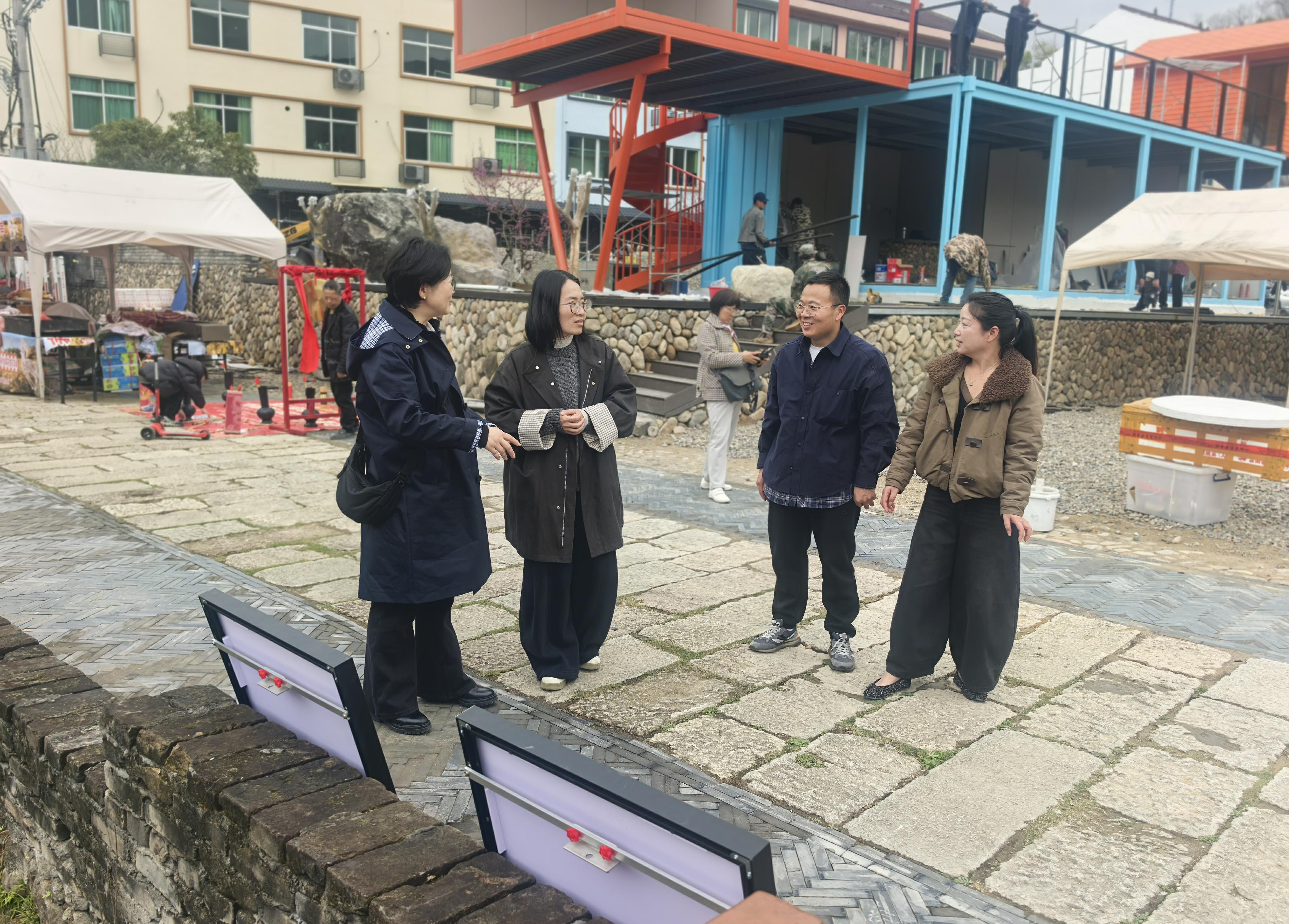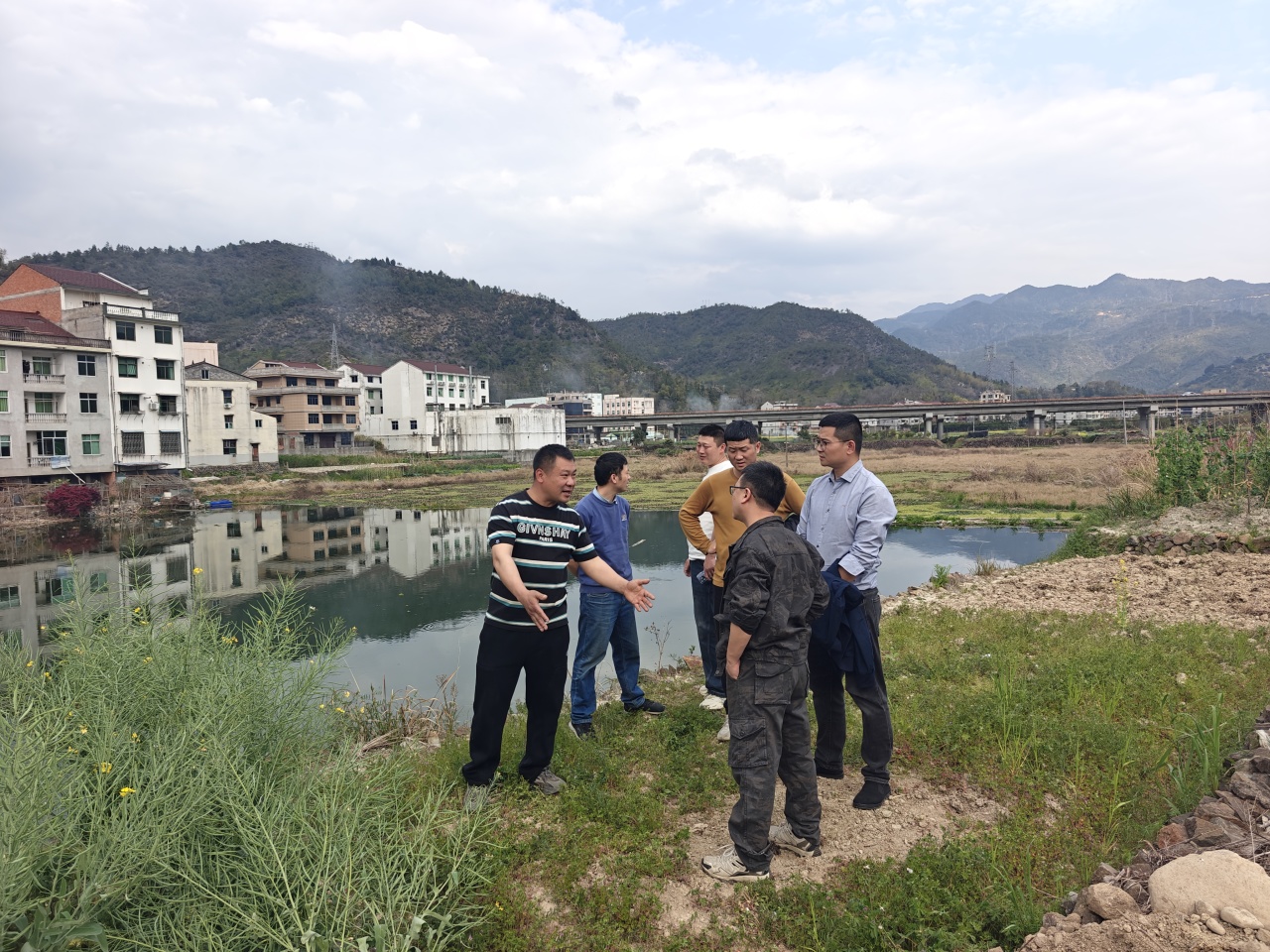 船寮镇联合县交投公司、水投公司现场踏勘船高线环境整治点位,就智能公交枢纽、景观改造细节、征地情况等事宜进行现场协调。