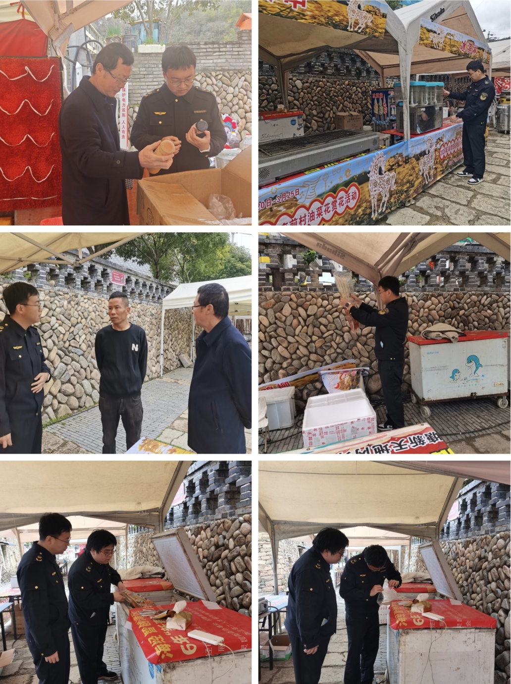 船寮镇联合县市监局船寮所对船寮油菜祥云赏花活动的美食集节主办方就现场设施布局、食品安全防范措施等进行检查。