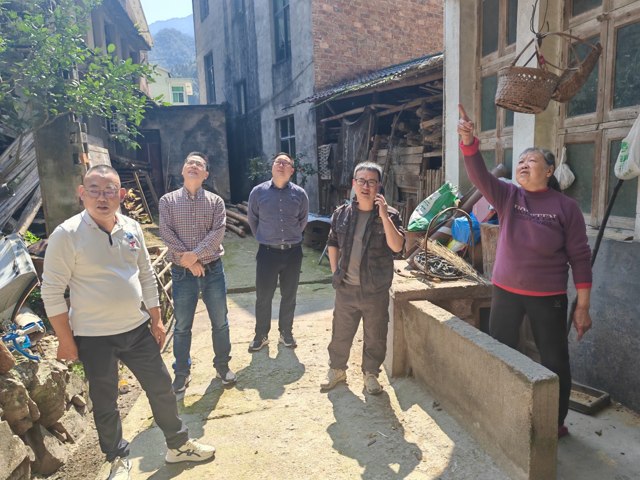 县创文办一行到洪府前村实地查看全国文明村镇测评建设情况,镇宣传委员张瑜陪同。