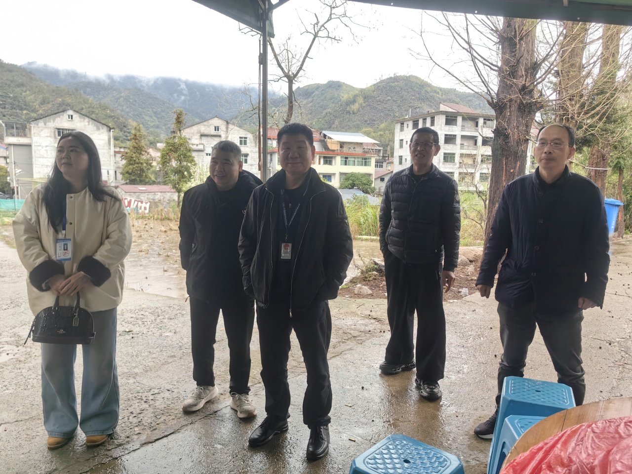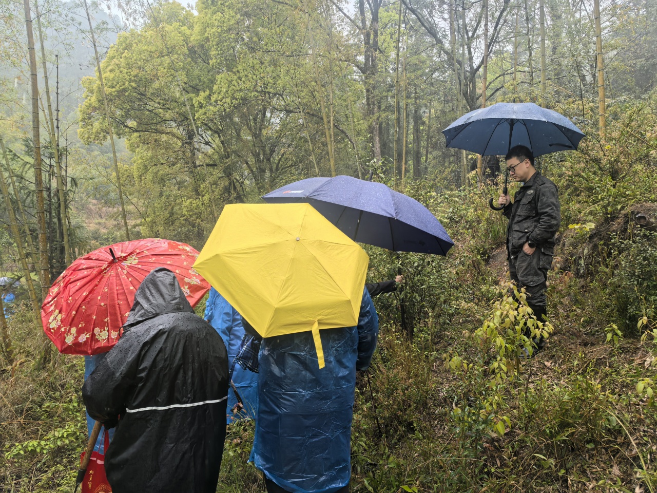 镇组织委员程乙颖、副镇长吴长城带队到洪府前村开展林区道路分户测量。