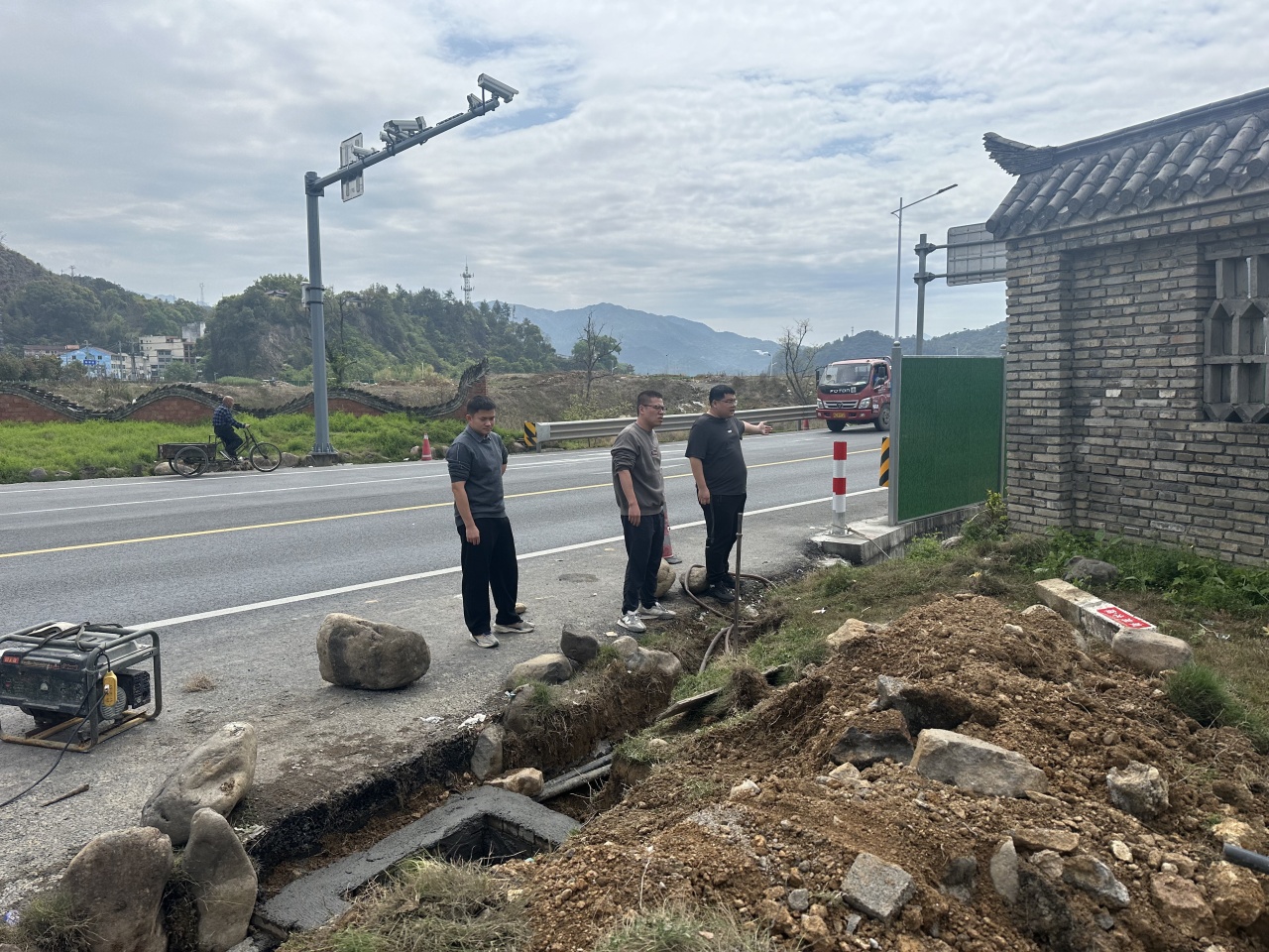 副镇长吴长城、副镇长陈明明实地查看溪源村村卫片整改情况。