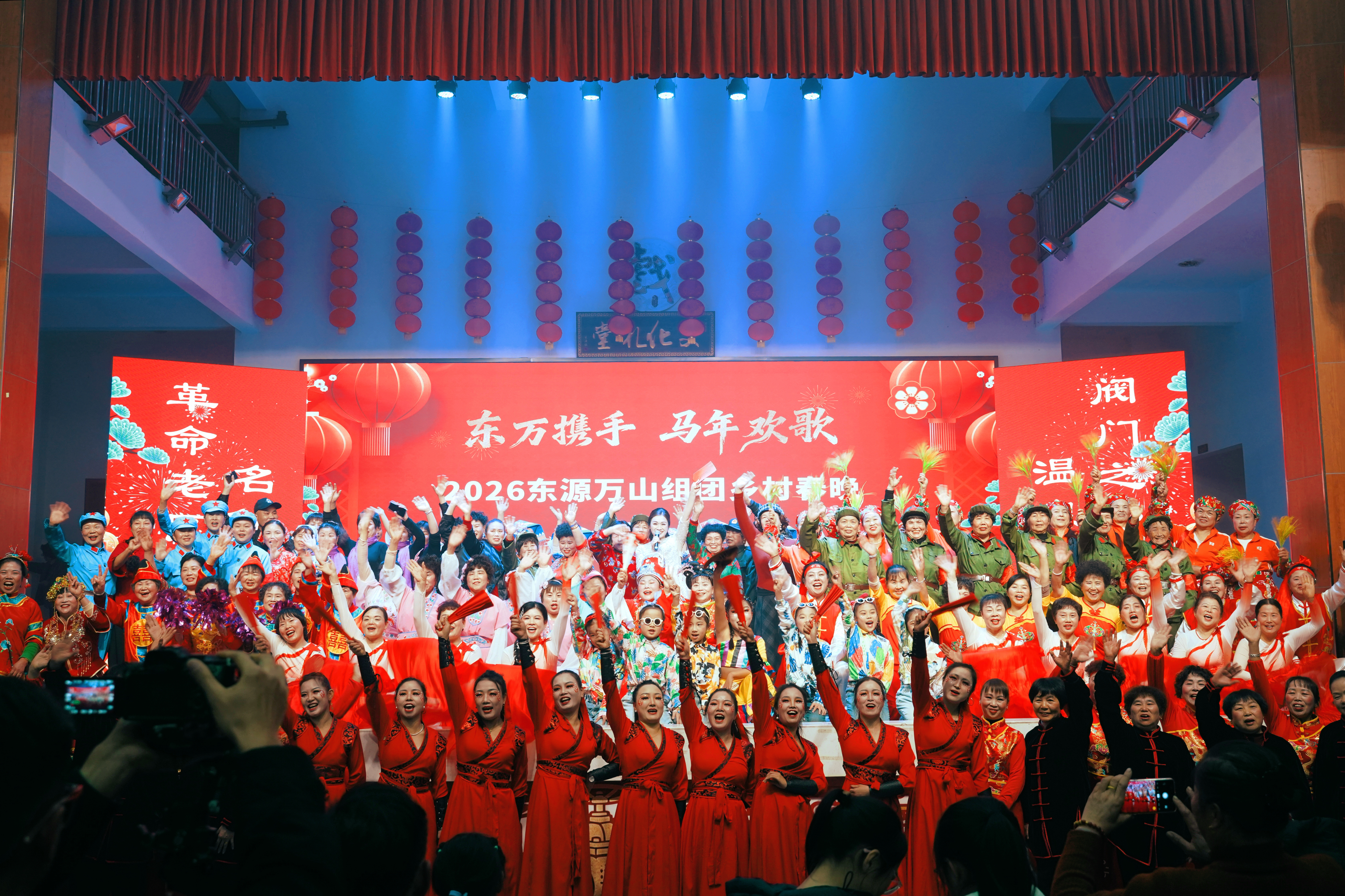 为丰富群众精神文化生活,展现乡村文化振兴新气象,2月5日,2026东源万山组团乡村春晚在东源镇新时代文明实践所精彩上演。