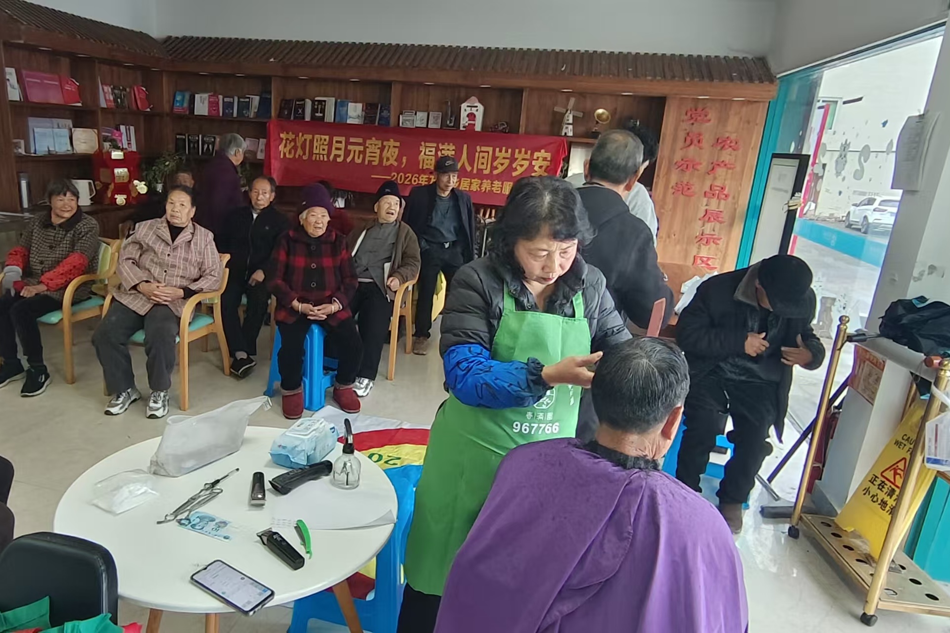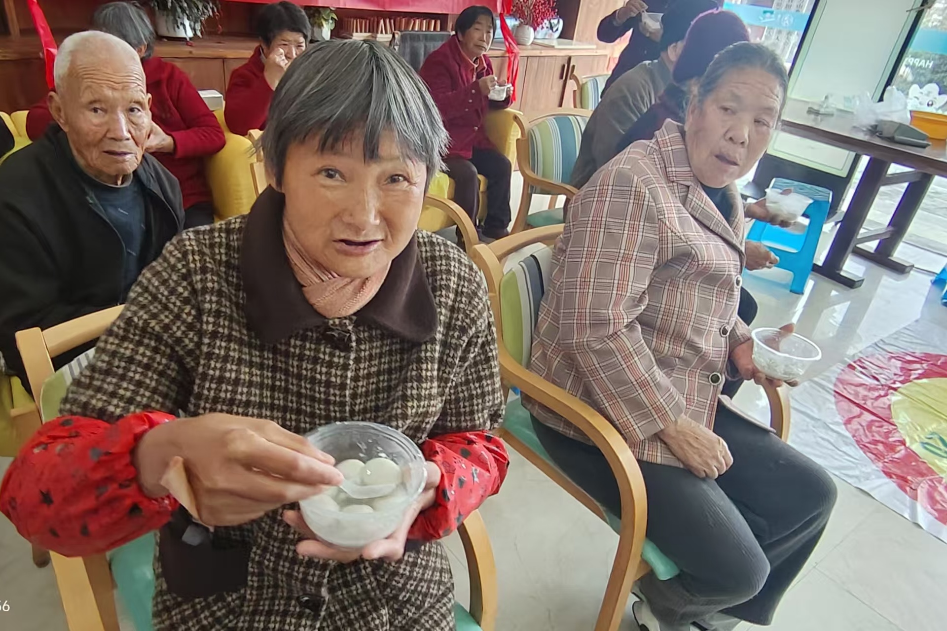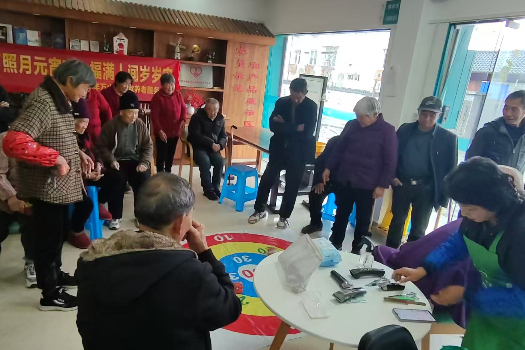 活动中,志愿者们以“友善”“和谐”“文明”为主题,为村内老人提供免费理发、测量血压等暖心服务,用实际行动传递邻里互助的真情。现场还设置了趣味游戏环节,老人们积极参与小游戏,欢声笑语不断。活动最后,志愿者们端上热气腾腾的汤圆,与老人们围坐一起品尝,共话家常,其乐融融,生动诠释了“和谐”“友善”的价值理念。