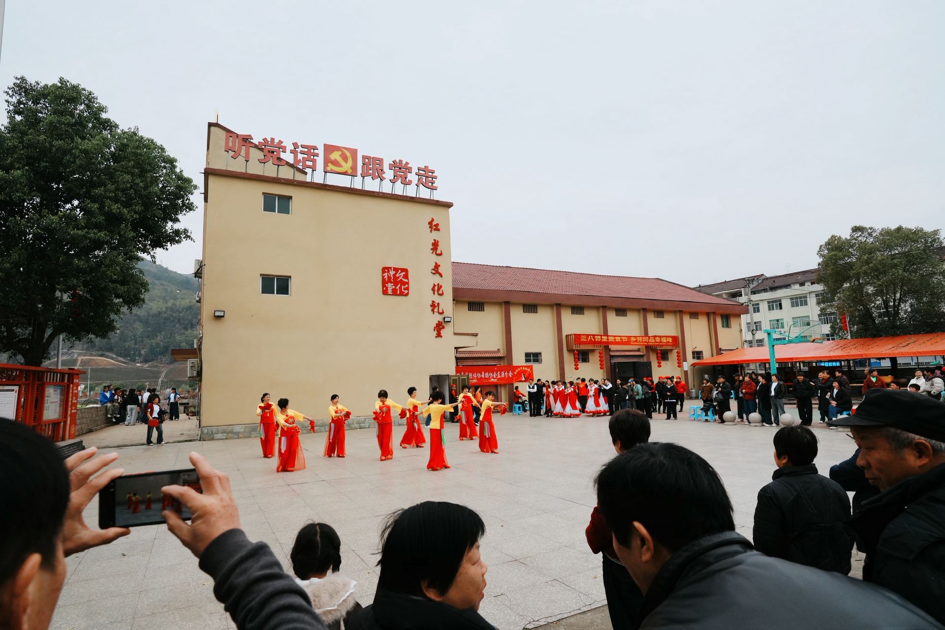 活动中,激奋人心的鼓舞震撼开场,鼓点铿锵、彩绸飞舞,瞬间点燃现场气氛。随后,各种舞蹈、广场舞轮番上演,姐妹们踏着欢快的节拍,用优美的舞姿展现了新时代农村女性的自信与活力。美食区飘香四溢,阿姨们早早准备食材,围坐一起包馄饨、话家常,用灵巧的双手捏出一个个饱满的馄饨,不一会儿热气腾腾的馄饨出锅,大家品尝着鲜香美味,脸上洋溢着幸福的笑容。现场还设有健康义诊区,医生为村民免费检测听力,耐心解答健康疑问,送上贴心关爱。整场活动将文艺表演、美食品尝与便民服务融为一体,让村民在欢乐祥和的氛围中切身感受到文明和谐、友善互助的价值力量。