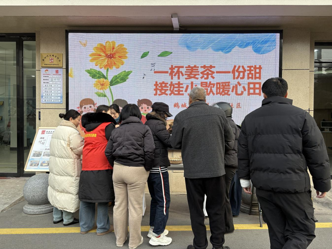 每天下午接娃高峰时段,“接娃小歇站”都会热闹起来。家长们陆续抵达后,不再是焦急地在路边排队等候,而是走进小歇站,找个座位坐下,喝一杯温热的茶水,品尝一块香甜的点心,相互交流育儿心得,原本枯燥的等待时光变得轻松而惬意。“以前接孩子要提前半小时来,只能站在路边等,遇到刮风下雨特别不方便。现在有了这个小歇站,既能歇脚又能喝水,社区想得太周到了!”一位经常来接娃的家长王女士高兴地说道。