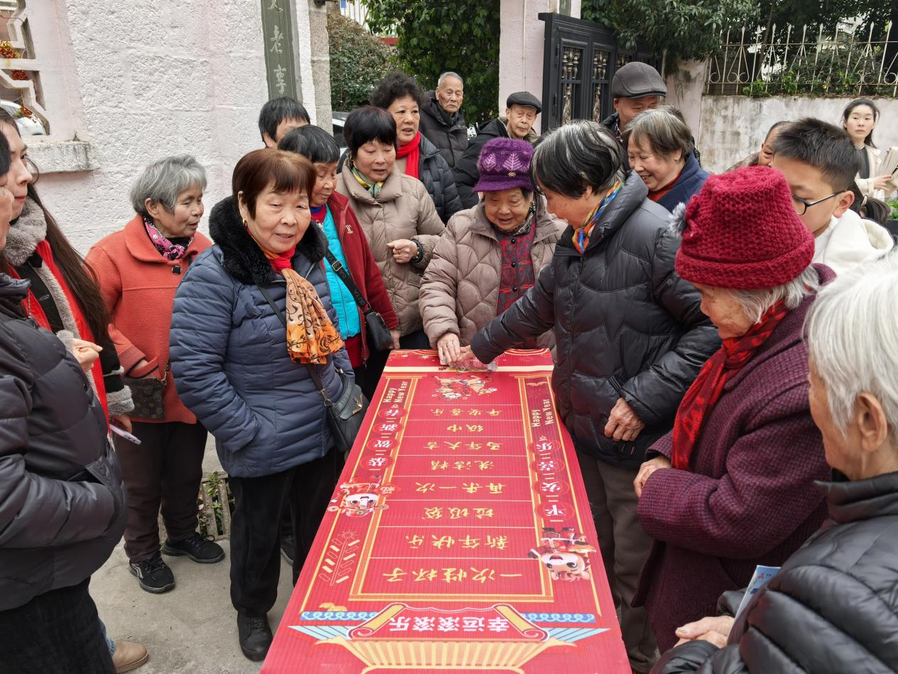 活动现场设置了多个互动体验区域。入口处摆放了月里湾社区文明行为承诺签名墙,不少居民纷纷参与签名,承诺将为社区贡献自己的一份力量;在垃圾分类游戏区,工作人员通过趣味问答和实操演练,向居民普及垃圾分类知识,引导大家养成绿色生活习惯;在"幸运滚滚乐"游戏区,居民们踊跃参与,在欢声笑语中赢取新春礼品。同时,邮储银行工作人员现场设立咨询服务台,向居民详细介绍存款理财、消费信贷等优惠政策,解答金融疑问,将惠民服务送到群众家门口。