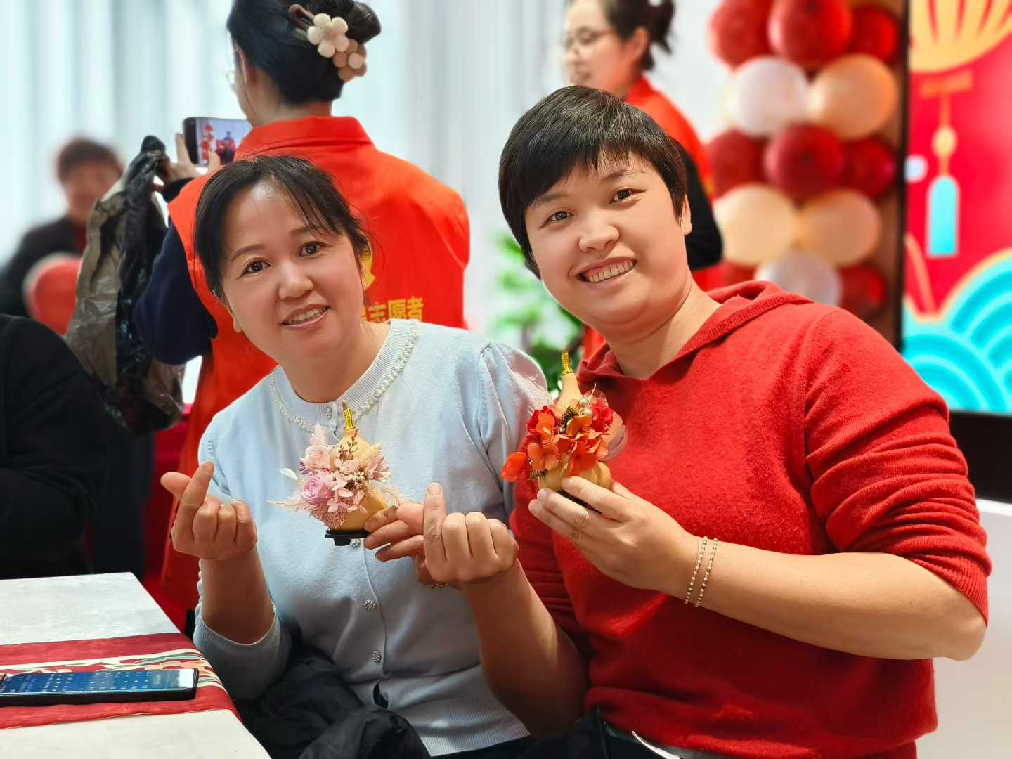 社区特别设置了暖心环节,邀请辖区女性代表共同参与“永生花葫芦”手工制作。永生花寓意恒久的美好,正如她们日复一日的付出,不求惊天动地,却在平凡中绽放光芒。姐妹们以指尖的温度,致敬心中的光芒,也用这份亲手制作的礼物,祝福彼此——愿每一个“她”,都能被岁月温柔以待。