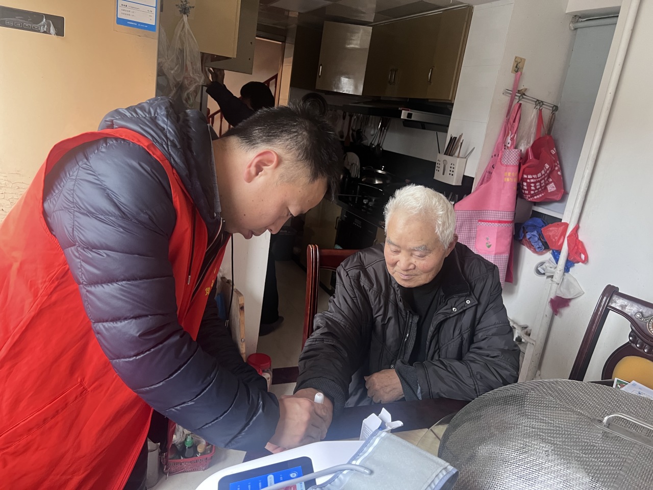2月27日,瓯南街道水南社区依托“1+1+N”的侨星志愿队伍,联动党员、网格员及医生等多方力量,为老人提供居家安全与健康管理等上门服务实际需求,传递社区关怀与温暖。