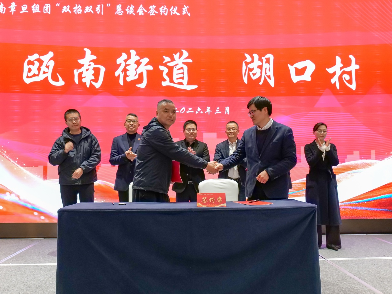 为响应县委县政府“新春第一会”决策部署,贯彻落实“大抓产业、大抓项目、大抓招引、大抓营商环境”工作要求,3月1日,瓯南章旦组团召开2026年“双招双引”恳谈会。县人大常委会副主任、县委组织部常务副部长林毅,县政协副主席徐啸放,原县政协副主席、县慈善总会会长刘新青等瓯南籍县领导出席会议,组团各界代表、班子成员、各村社“一肩挑”书记参加会议。