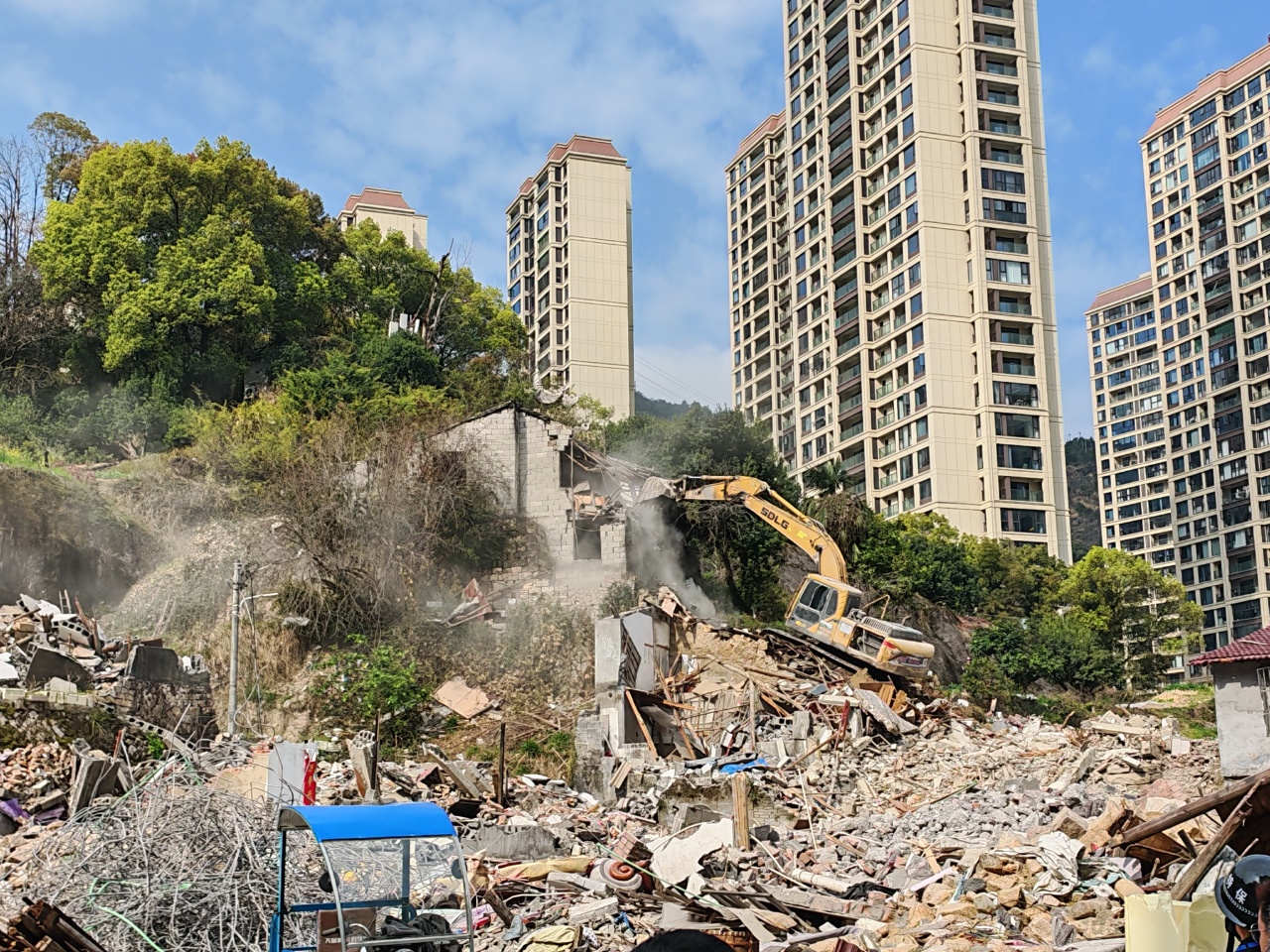 本周,瓯南街道石郭上村持续推进旧村改造房屋拆除工作。