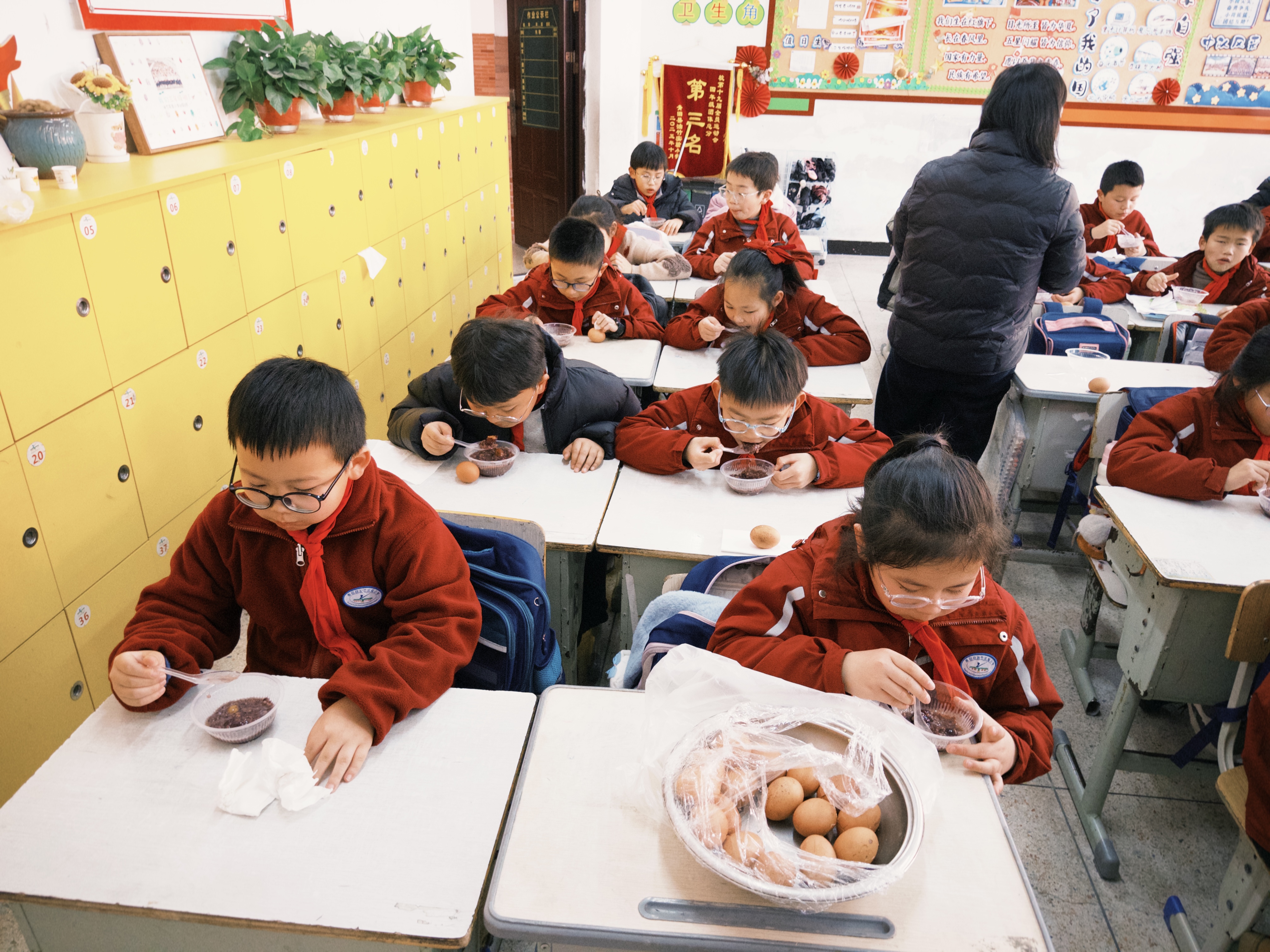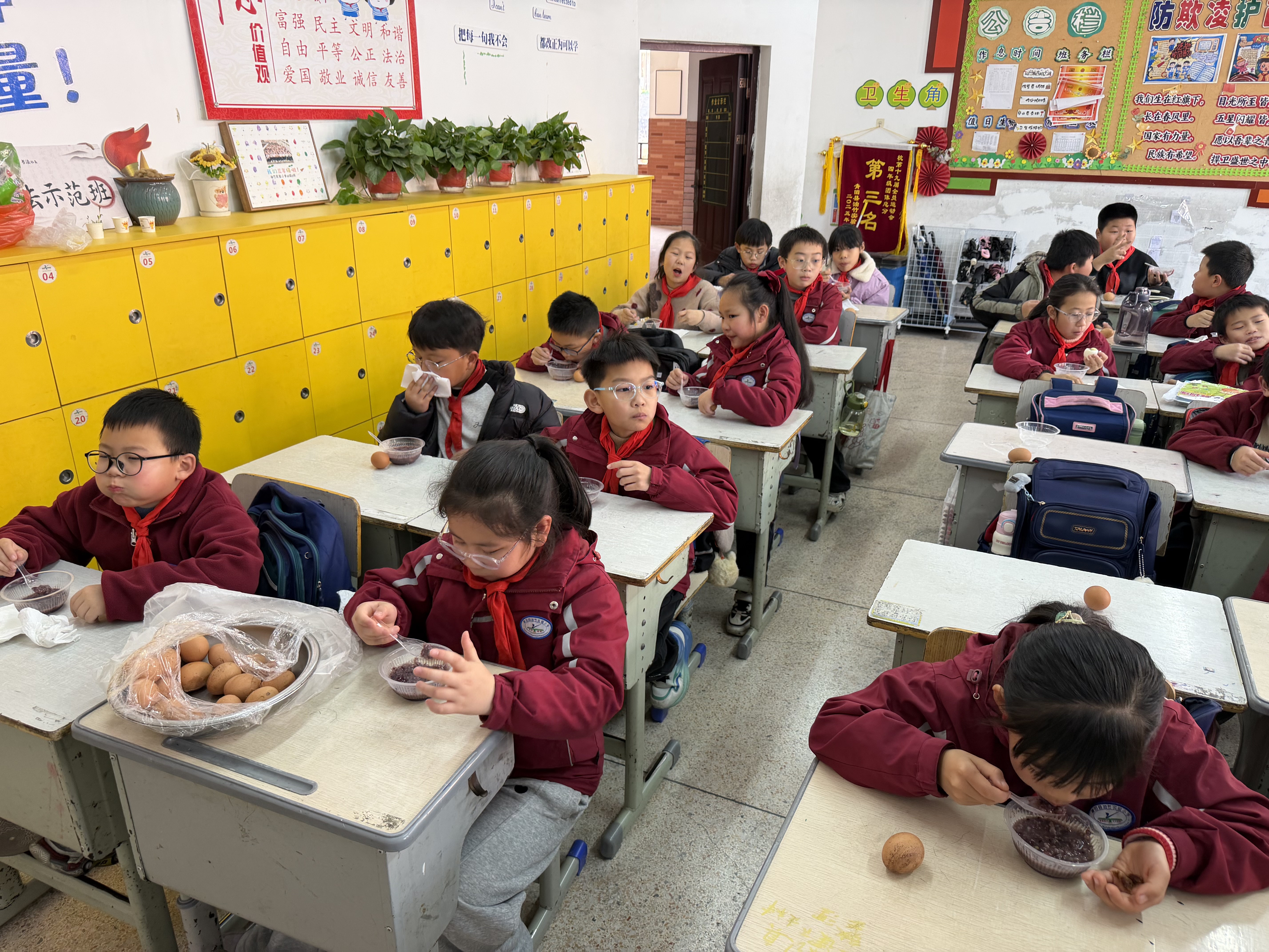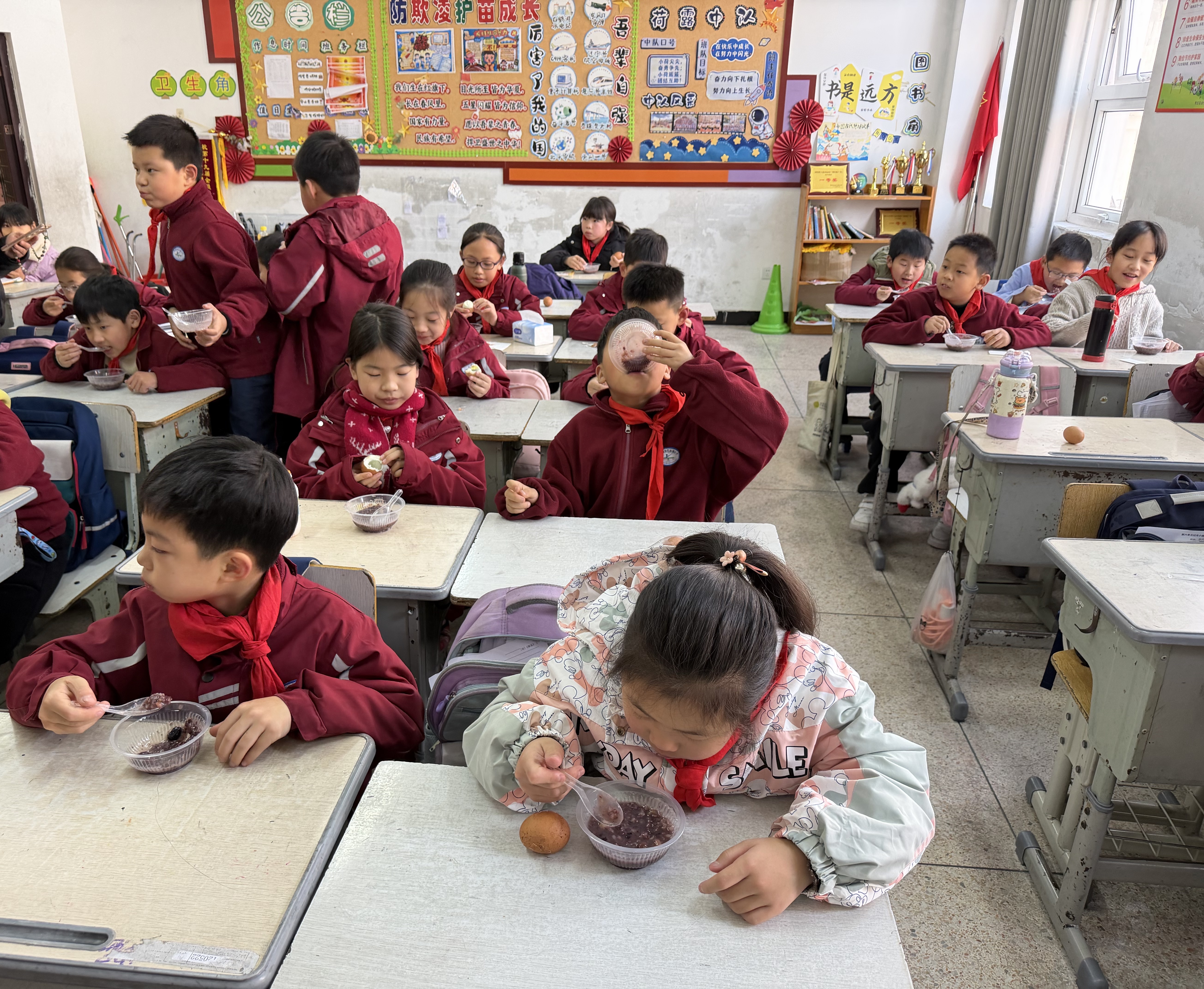 “好香啊!”四年级的来怡踮着脚尖,眼睛里闪着期待的光芒。“小心烫,慢慢吃。”志愿者一边为孩子们盛粥,一边轻声叮嘱。看着孩子们满足的笑脸感慨道:“这不仅仅是一碗粥、一个蛋,更是社区对教育、对下一代的关爱。”