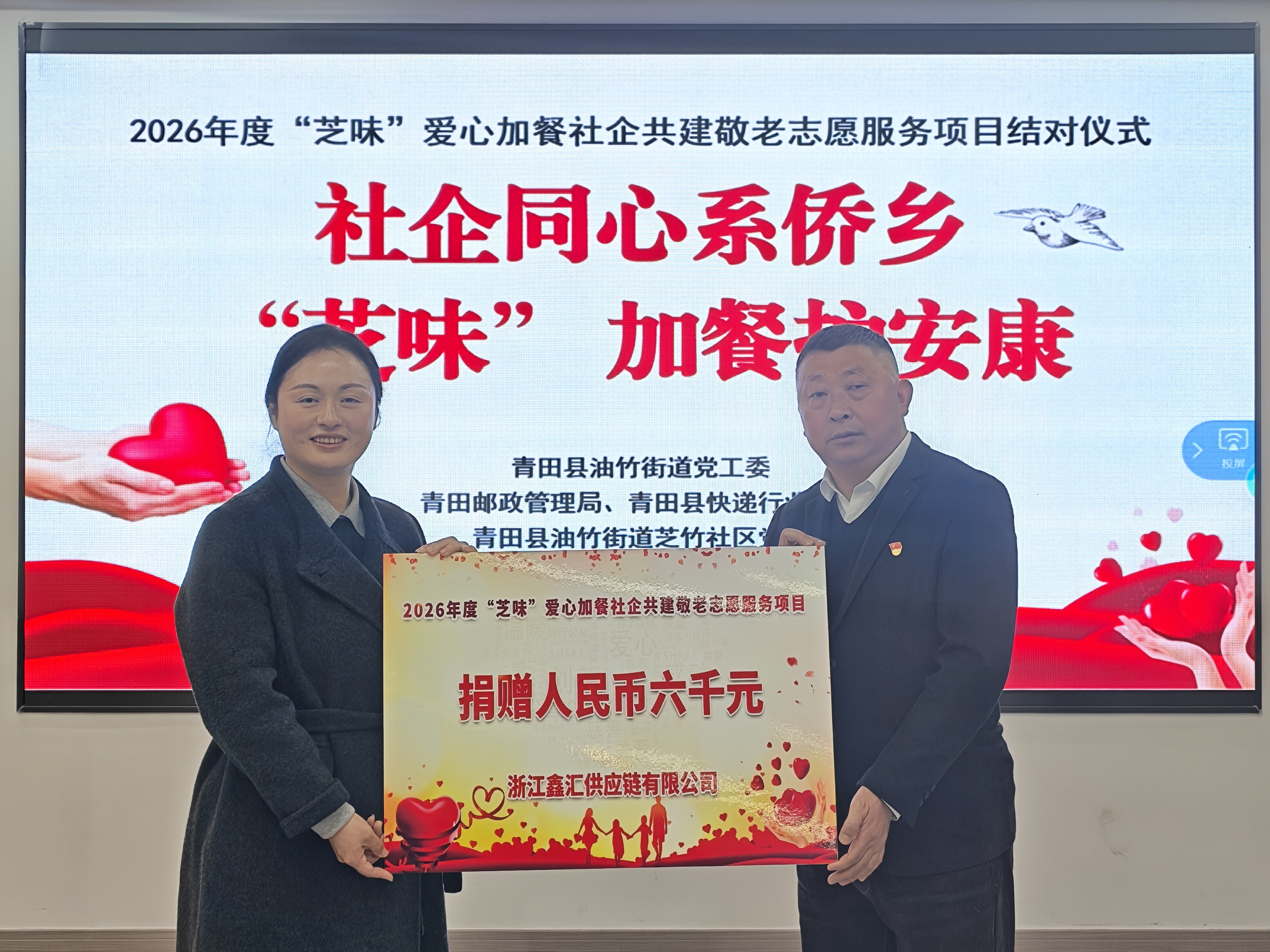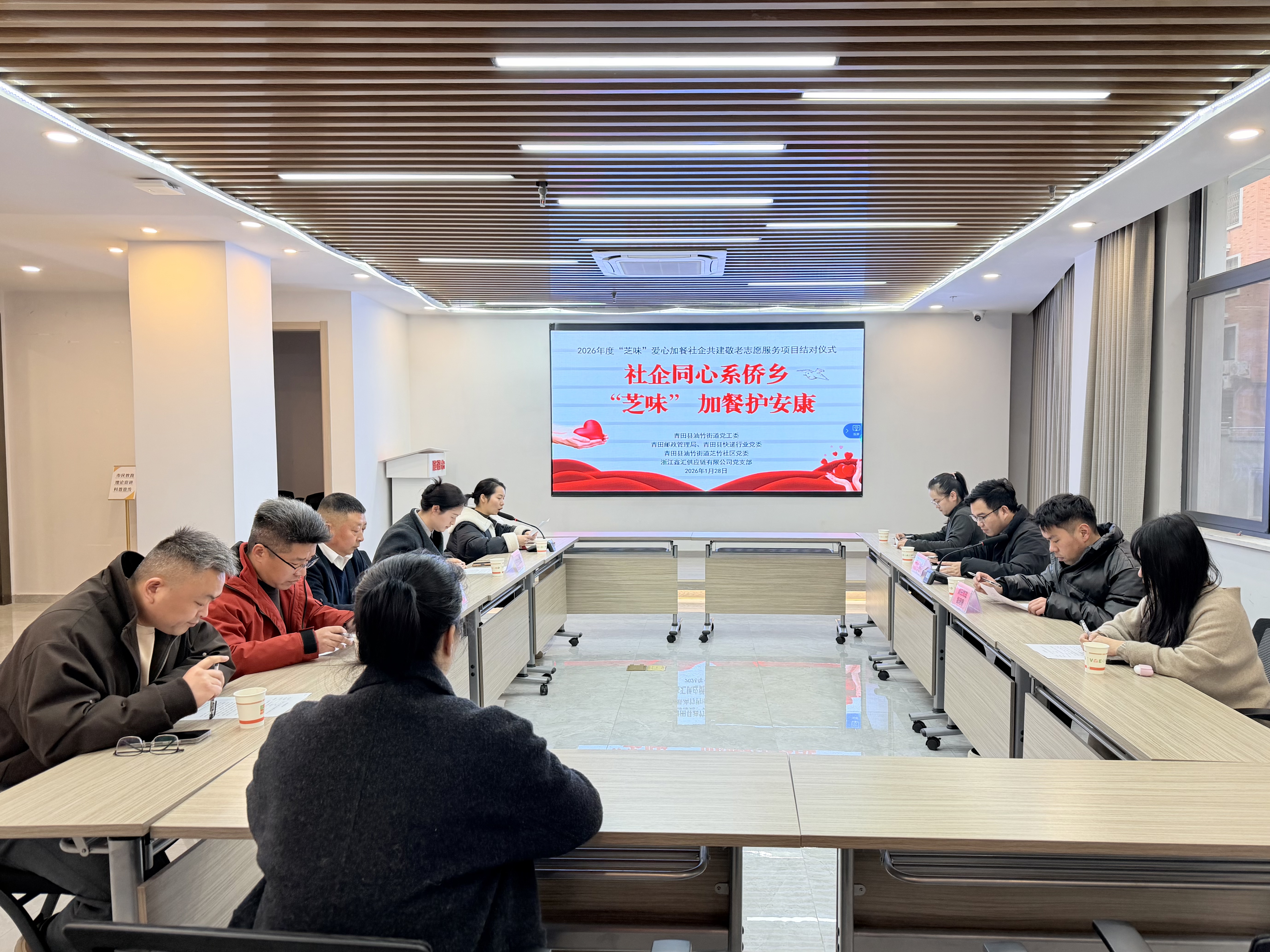 1月28日下午,2026年度“芝味”爱心加餐社企共建敬老志愿服务项目结对仪式在油竹街道芝竹社区党群服务中心举行。油竹街道党工委、县邮政管理局、浙江鑫汇供应链有限公司党支部等单位代表共同见证这一温情时刻。