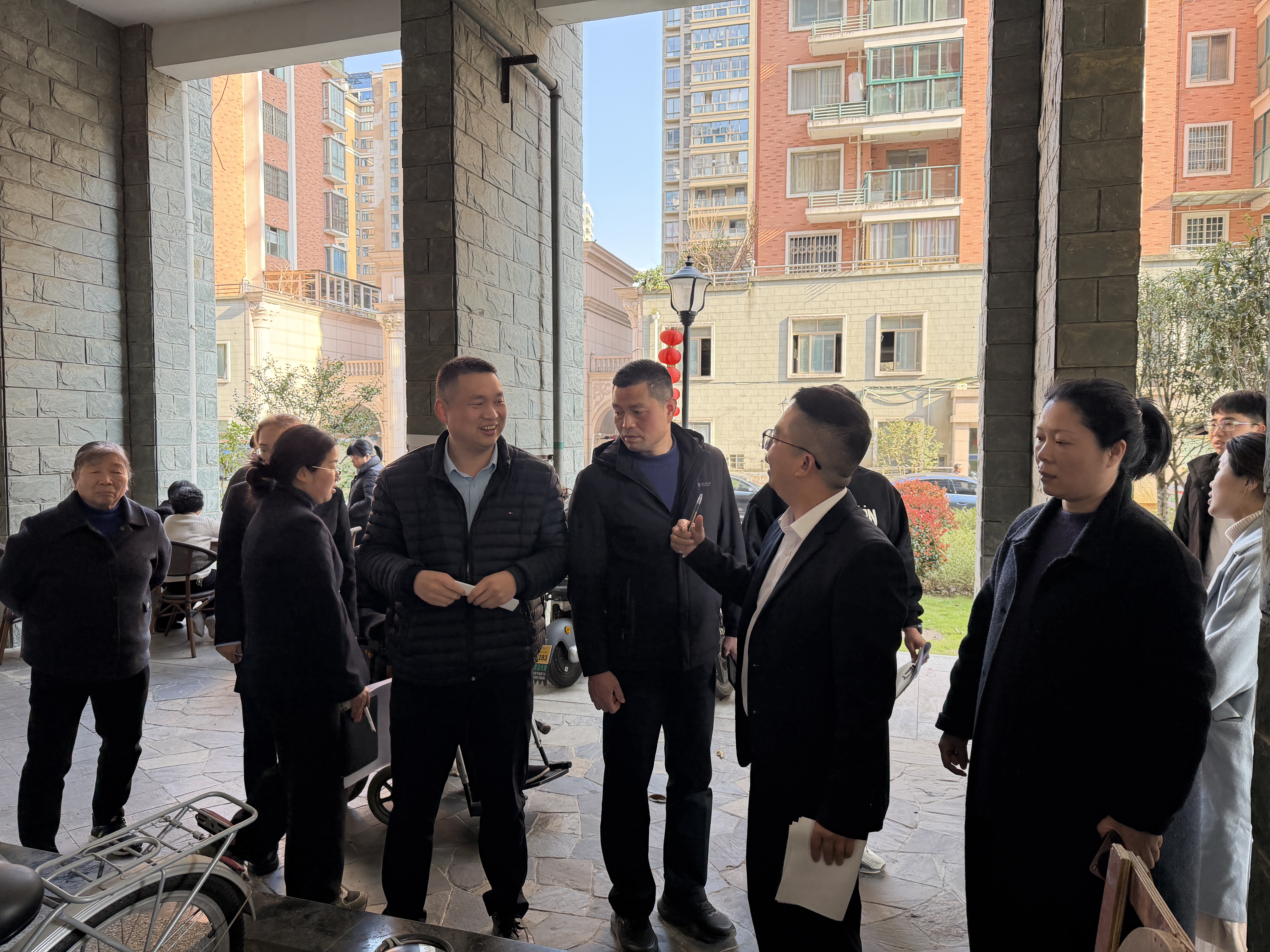 会后,参会人员一同前往小区实地查看,深入楼道、绿化带、消防通道、垃圾投放点等关键区域,对照创文标准逐项排查,现场指出问题、明确整改方向。