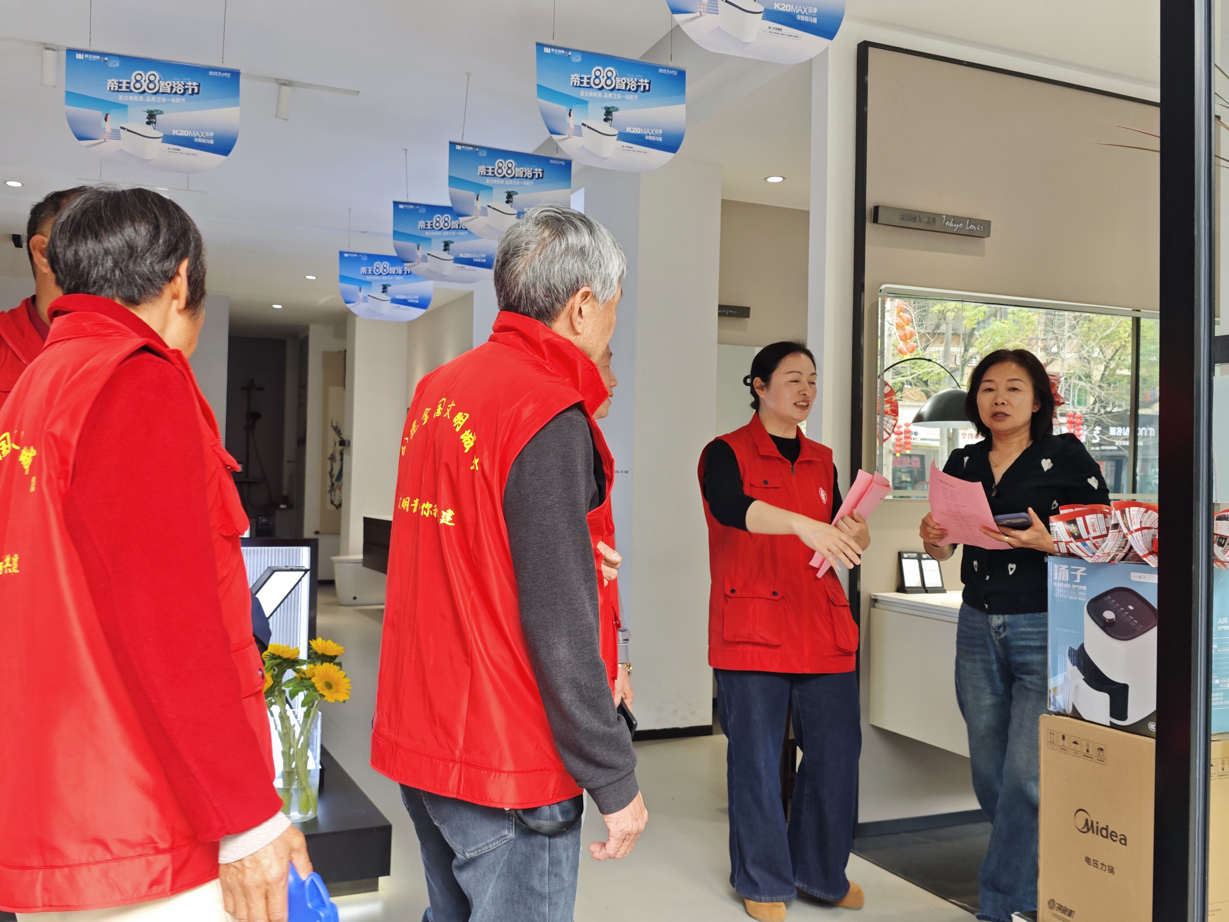 会后,文明劝导员们分组前往各自负责的辖区商铺开展入户宣传。他们身着统一马甲,向商户发放《文明倡议书》,讲解“门前三包”责任要求,并协助排查消防设施、卫生死角等安全隐患。与此同时,各劝导员通过实地走访进一步熟悉点位边界、重点区域分布,确保创文工作责任到人、落实到位。